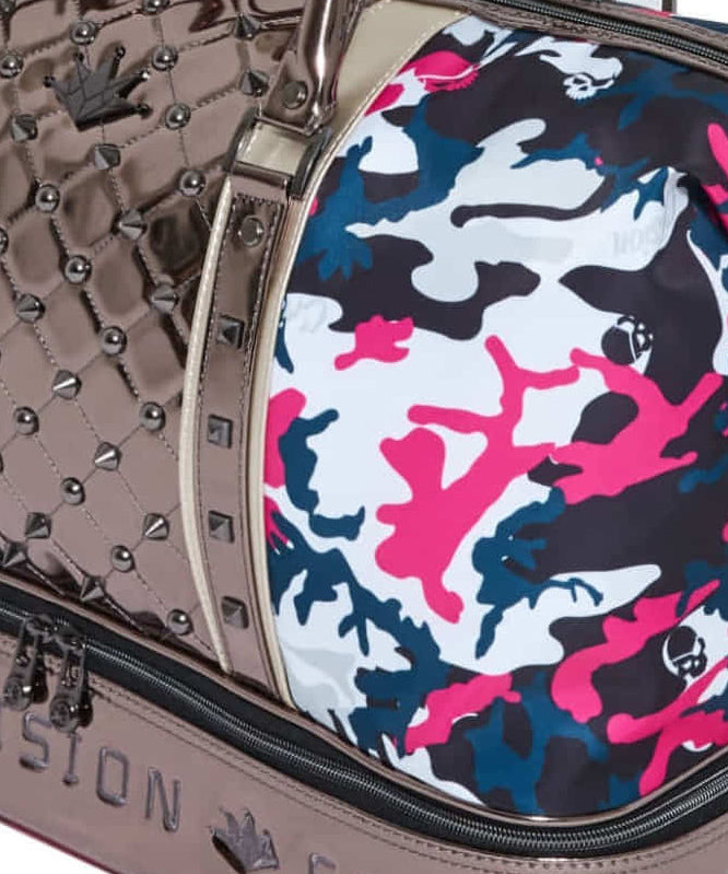 Round studs and skull studs are done in harmony with logo embroidery on the bottom. A roomy bag with versatile storage spaces that do not harm the form.
