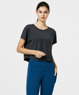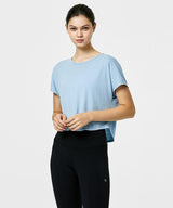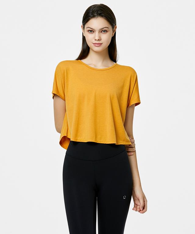 The rounded shoulders and hem provide a feminine silhouette. Regular fit with crop length, easy to use for various sports and daily wear.